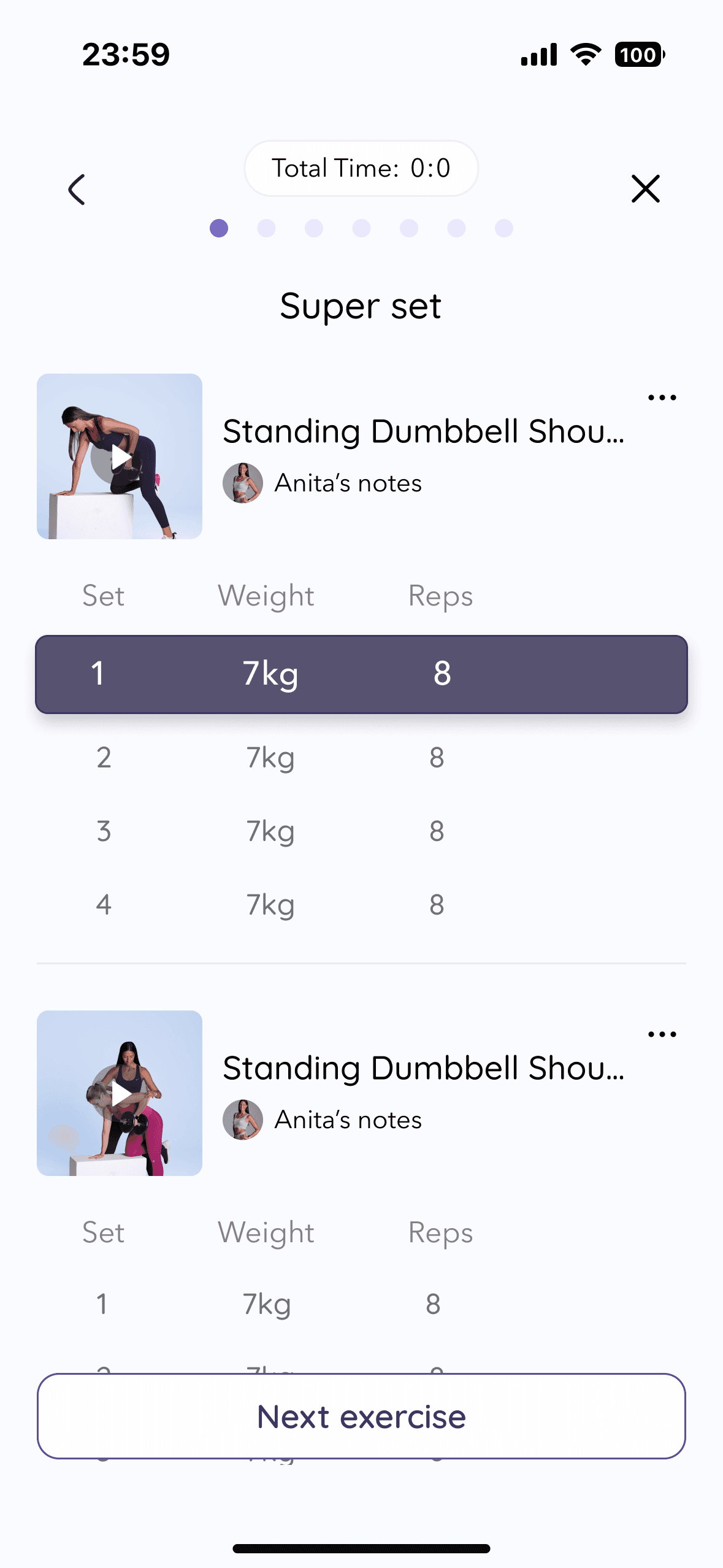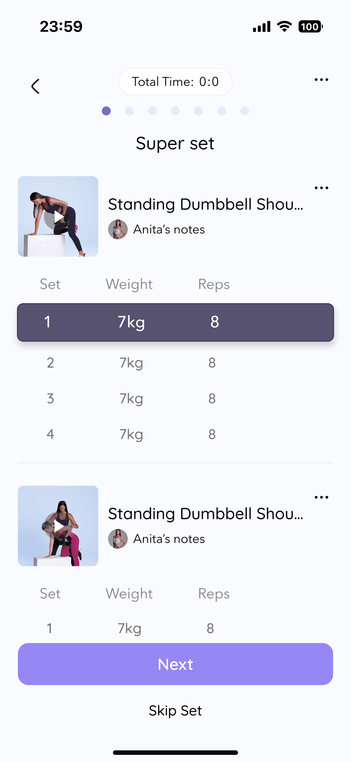 • "Next" button meaning ambiguous — next exercise, or next set?