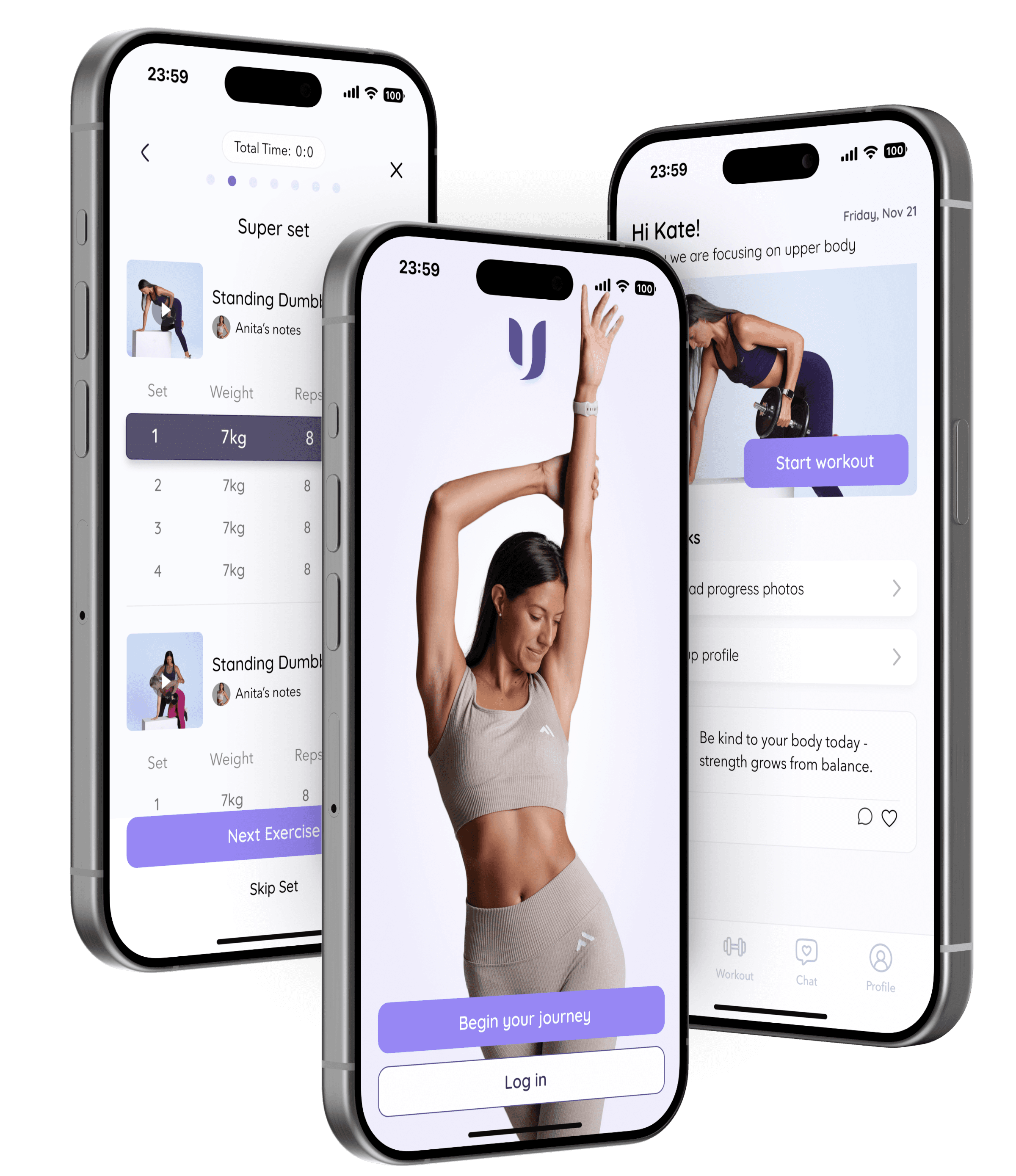 UPLIFT is an end-to-end UX/UI project where I designed the MVP of a personalized coaching app and a refreshed brand identity for Anita, a women’s fitness coach specializing in female training across all life stages, including pregnancy and post-partum. Her brand is built on empathy, balance, and personalized care - helping women feel strong, supported, and confident in their bodies.