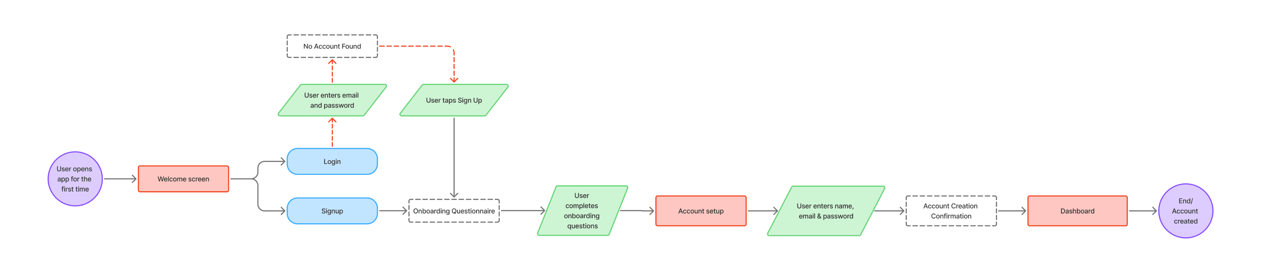 I structured the app around clarity and frequency of use, placing the dashboard at the center. The architecture prioritizes the most common daily actions while keeping secondary features accessible but unobtrusive.