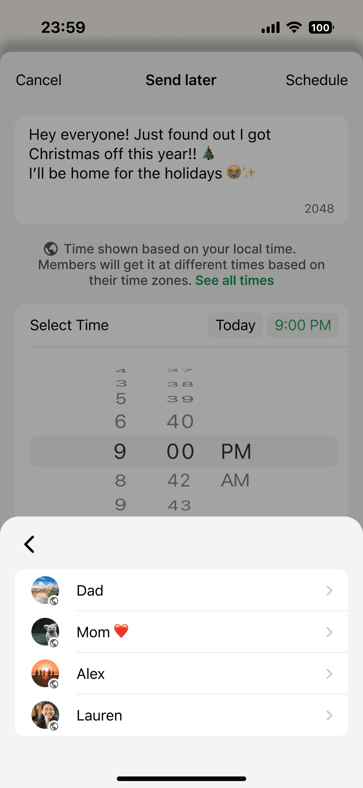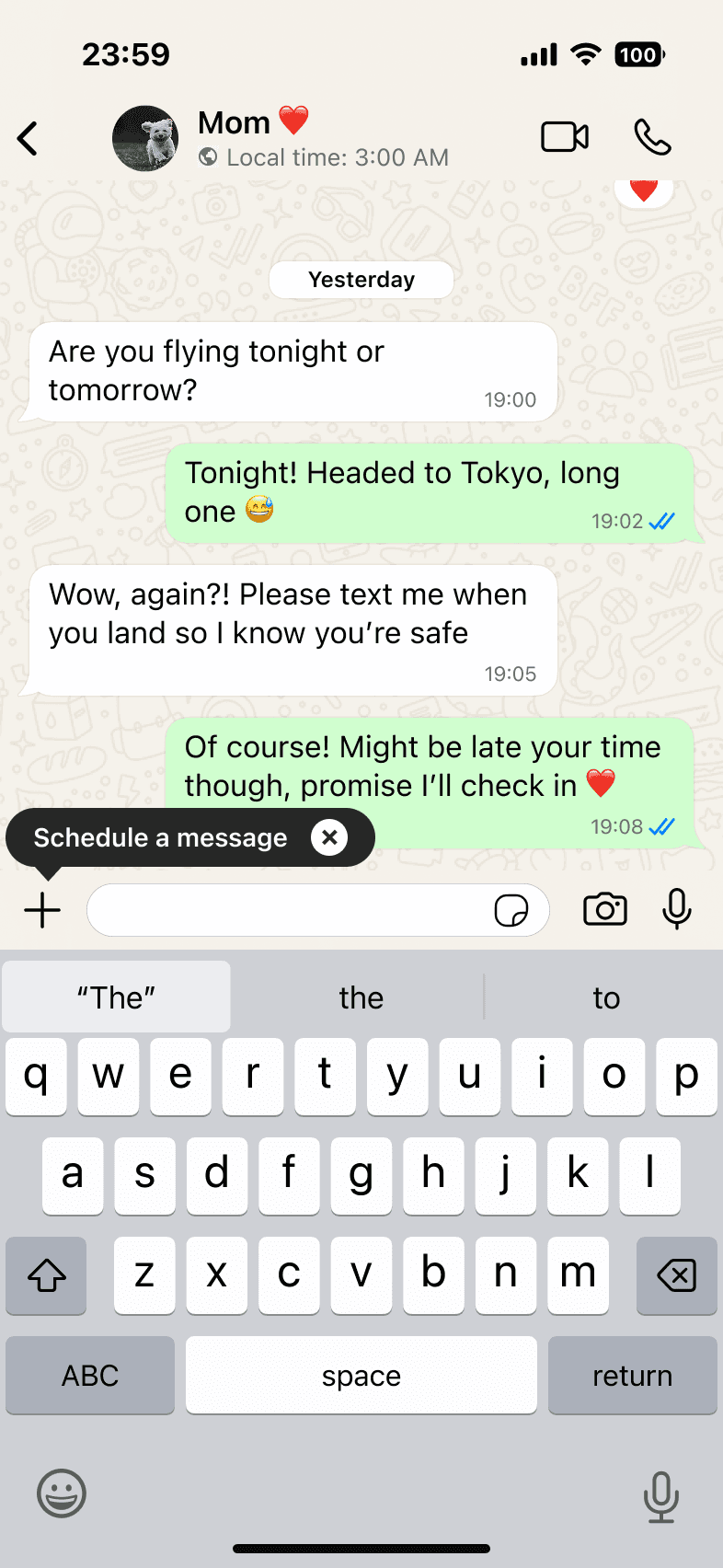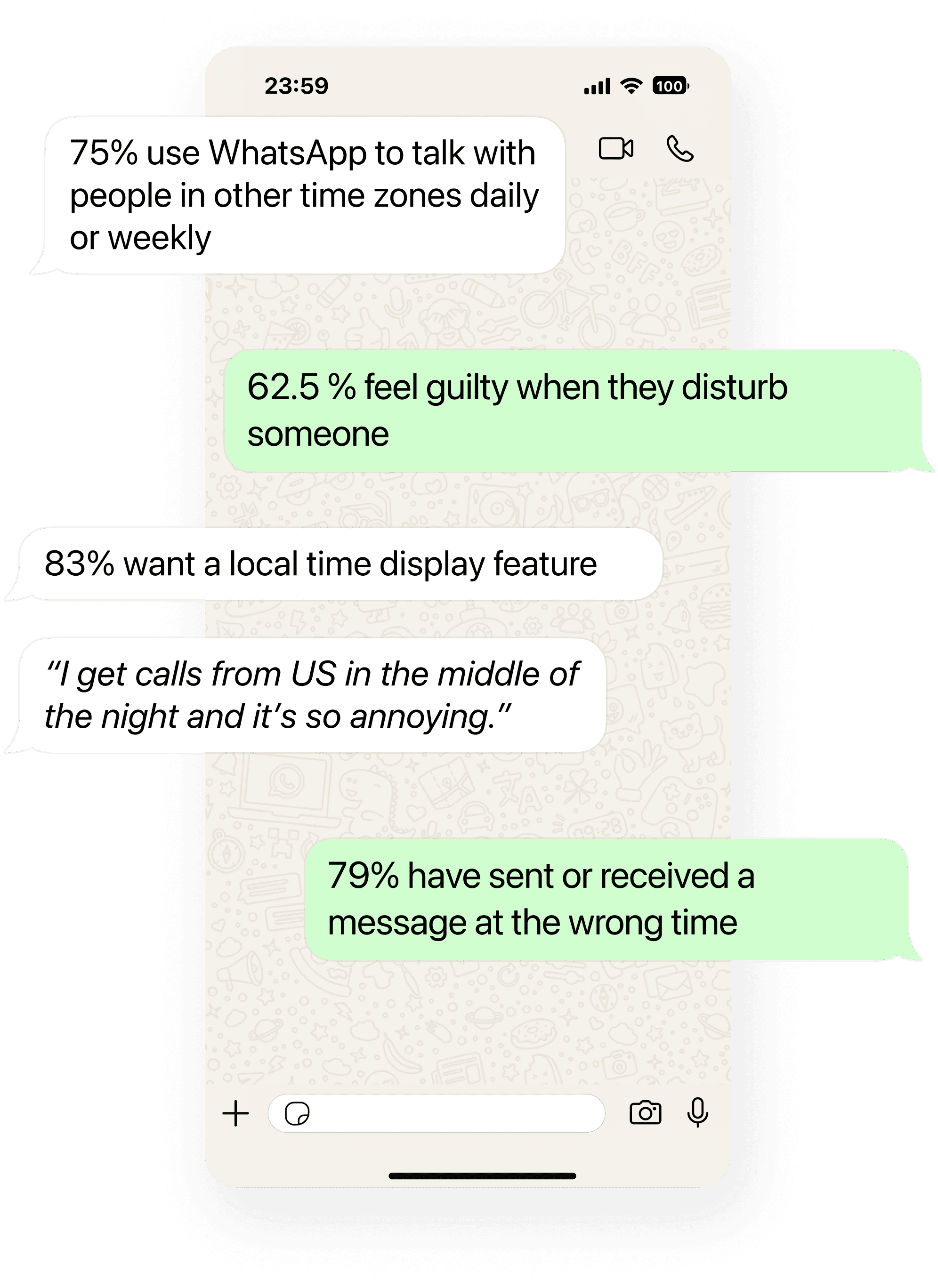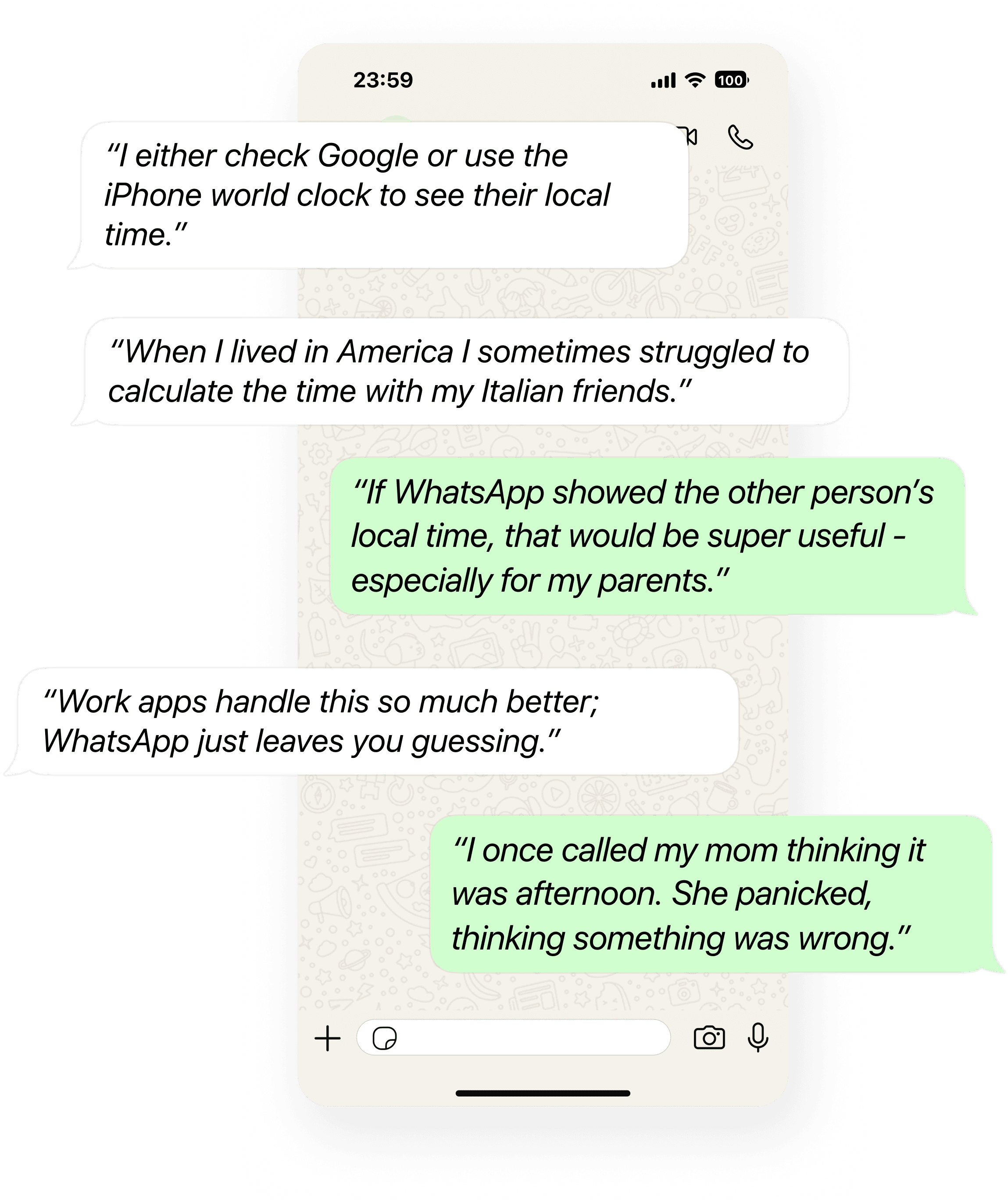 Time-zone friction is universal - users already find workarounds, but none feel seamless inside WhatsApp.