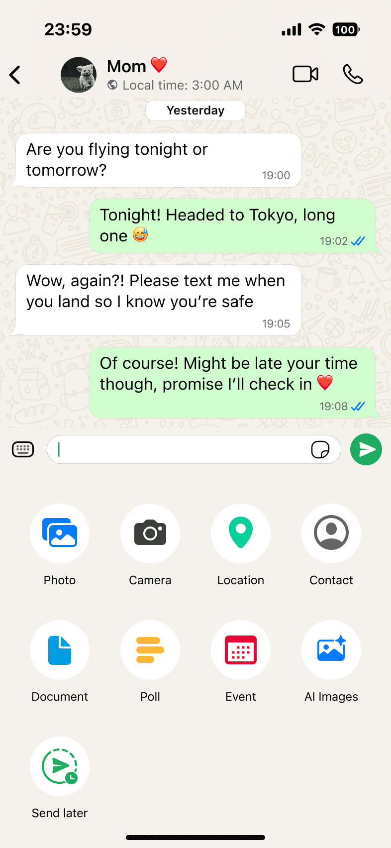 There’s a clear opportunity for WhatsApp to improve the experience by introducing time-zone awareness features.